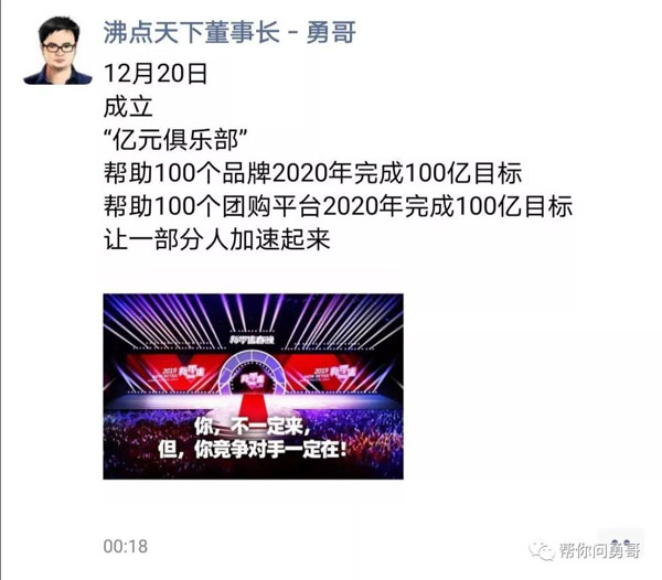 昨天勇哥朋友圈发了这样一段话: