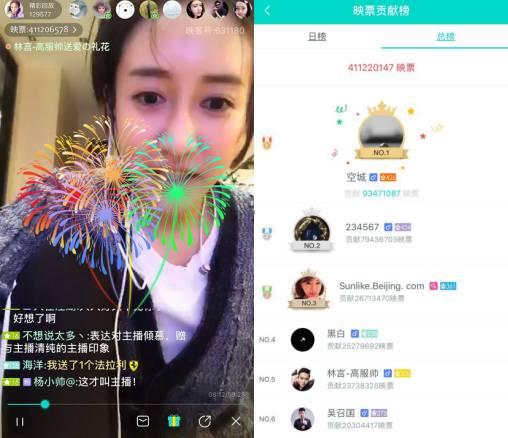 映客平台上收入榜长期第一名的冉大人,截至3月20日,共获得4.1亿张映票,结算成人民币计1.29亿元,主要来自与ID名为等等、吴召国等人的互动打赏。